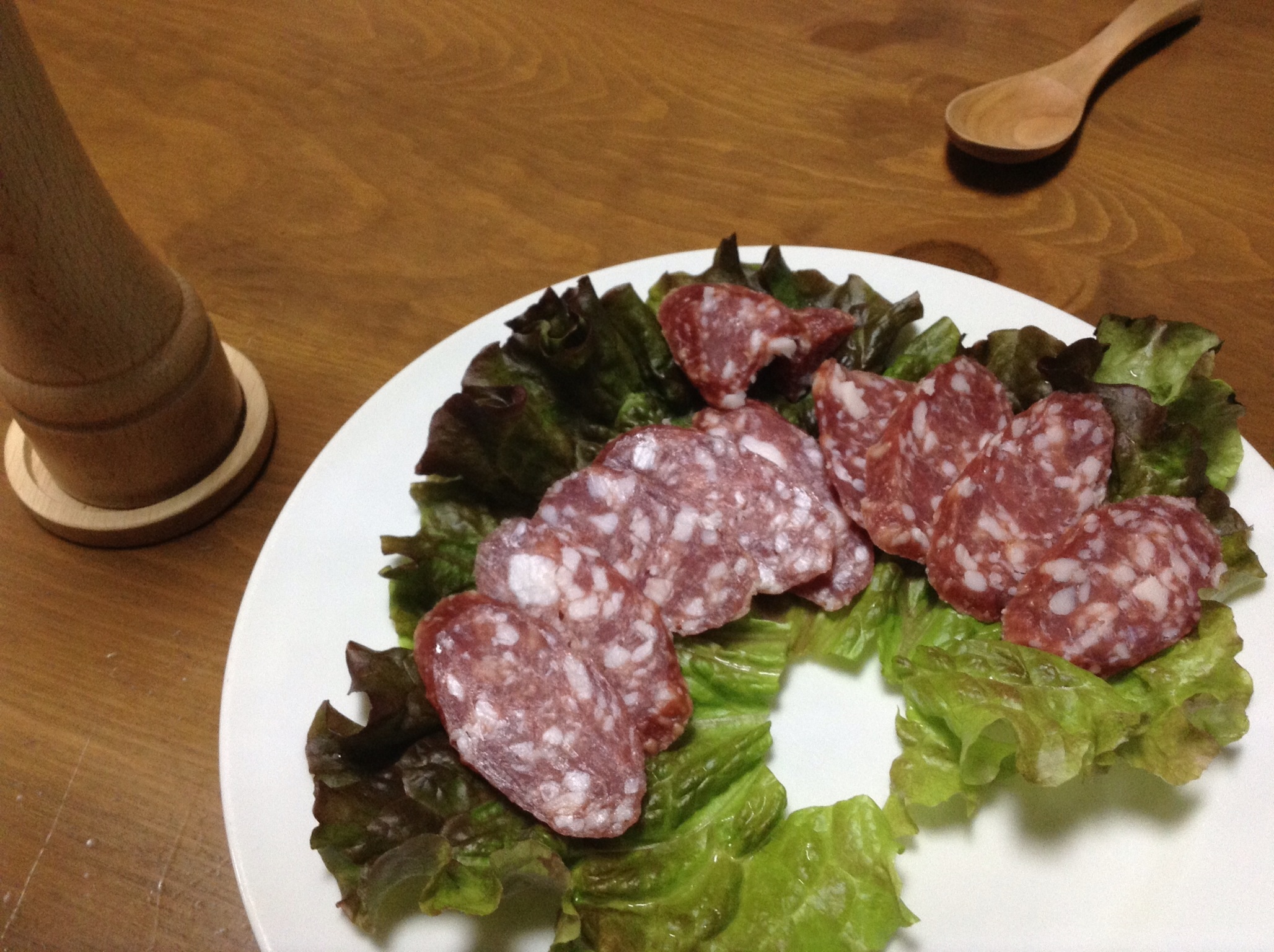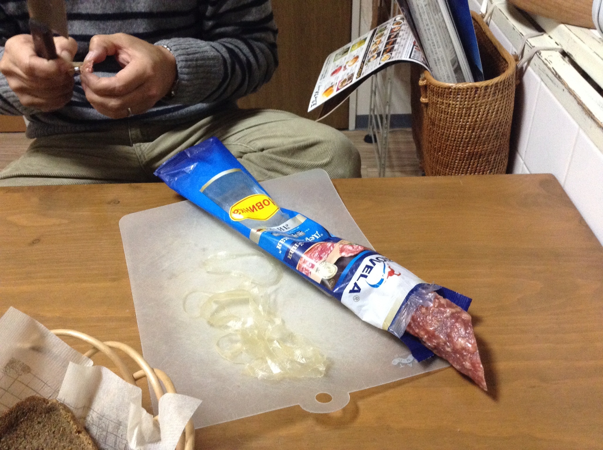 STOCKMANで購入したリトビア産サラミで、一本600円程といい値段。でも安いヨネ。