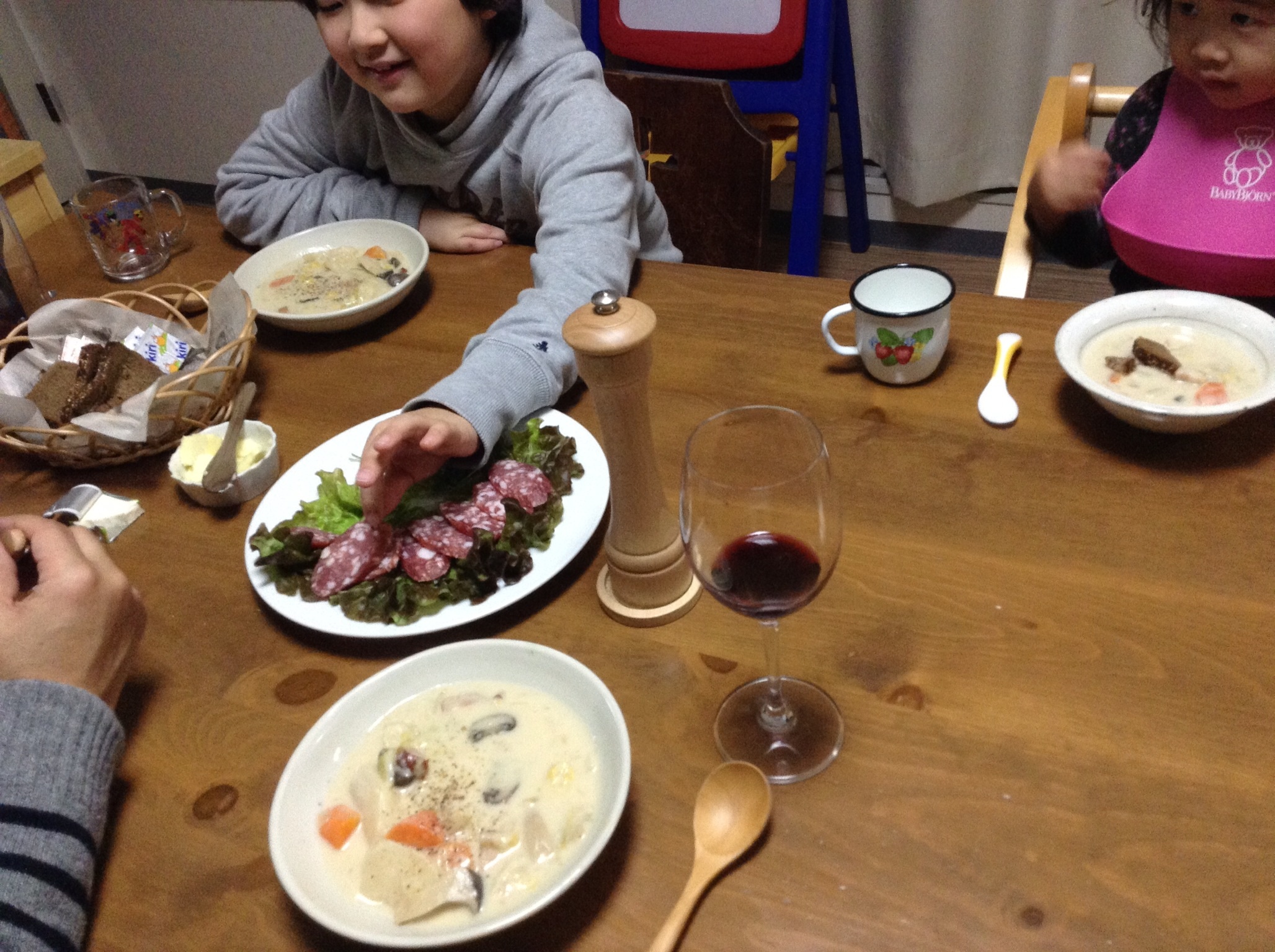 食卓に向かい合ってふたりすわる