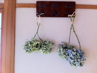 ブルー系の紫陽花の水分が減ると、水色→黄緑色に変色していきます。