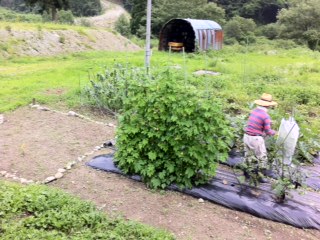 畑には今、クマンバチ発生情報(クマンバチって…スズメ位デカイんだってよ、奥さんッ!!)ありーの、朝晩はそろそろ恐怖のオロロ(極凶暴なアブの一種ネ)大発生警報発令中し、何か見えぬものに常に追われてる感満載の、平日午後・山間部限界集落の隅。