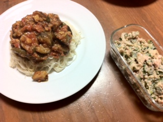 素麺にラタトゥイユ、サイドにゴーヤ一本使ったサラダ。