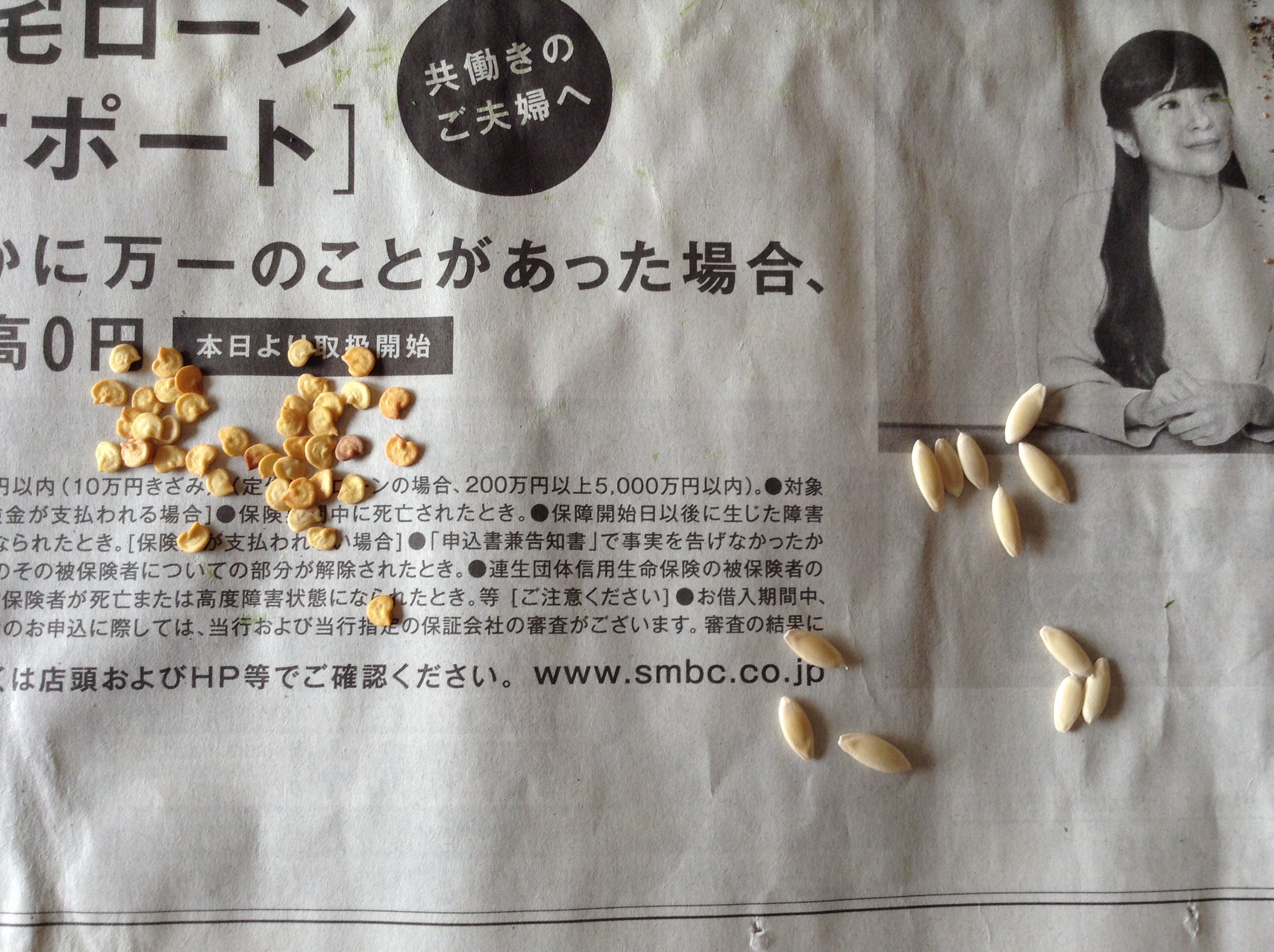 左がホットパプ(唐辛子の種と一緒だわ)、右がピクルスキュウリ(キュウリの種ですねぇーーー)。