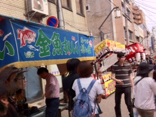 境内に出てる屋台は食べ物屋は勿論、スマートボールありーの、金魚すくいありーーの、輪投げ吹き矢あり、昭和初期にタイムスリップしたかのような風情。
