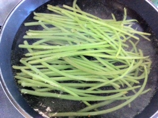 仕込みは簡単、葉を落とした軸部分をサッと茹でるだけ。