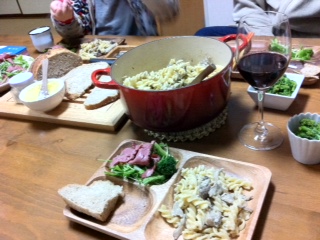 結婚記念日のお祝いディナーのメインは、今日の日に特別に焼いて貰った我が家御用達ブランジュリー・スノウさんの新作、糀酵母カンパーニュEXTRAライ麦in。パストラミサラダと、キノコのフリッジで。ええ感じや~。