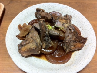 アルミホイル被せて落し蓋して、コトコト煮汁がほなくなるまで煮る。