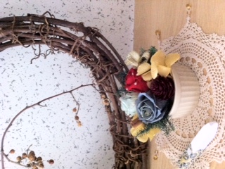 今日は天気も上々、リンを背負ってクリスマス用のブリザードフラワーアレンジを教わりに行ってきた。