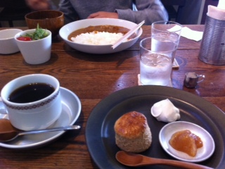 焼きたての全粒粉スコーン、鬼旨・冬の味覚。望む立山の尾根は五割方、もう既に白い。