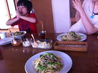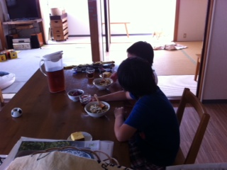 窓を全開にしてハァハァ、汗をかきかき、ダチと昼飯。