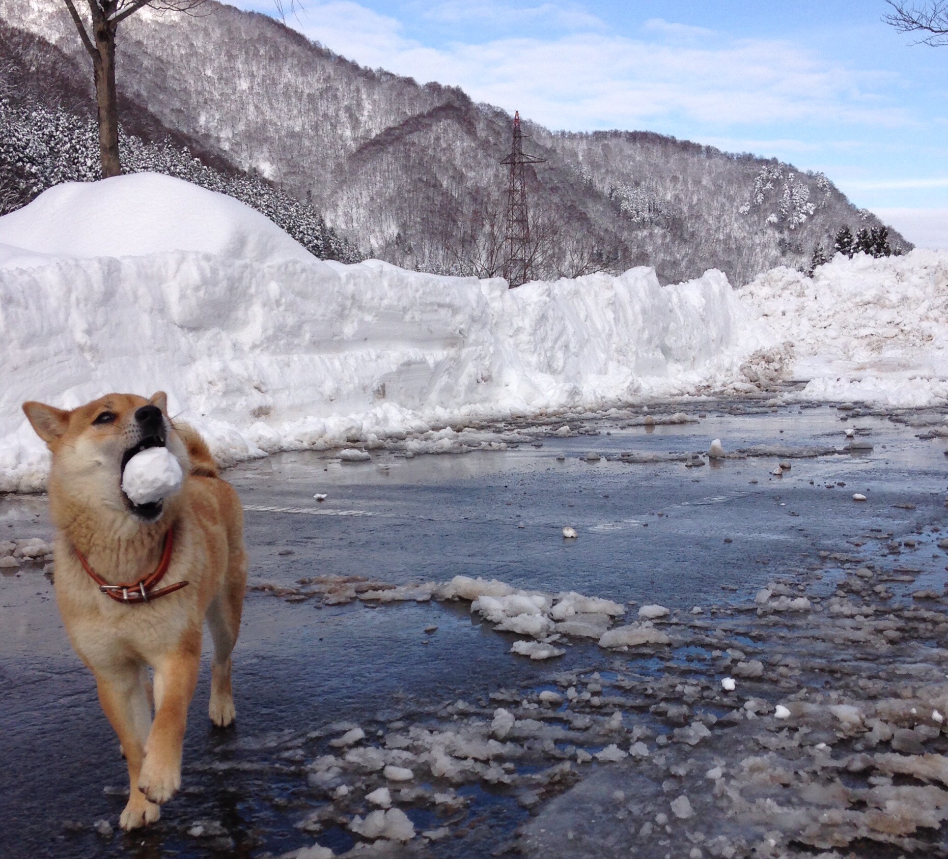 里山に似合うのは、雪やコンコと柴犬と決まっておる。うむ。すんばらしー構図。