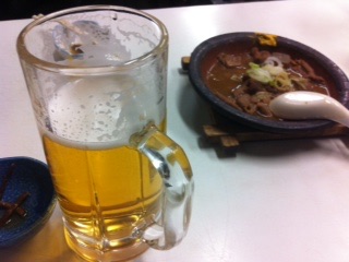 トウキョウ出張時の旦那さん行きつけ「三徳」で初呑み。(モツ煮込みと鯵フライサイコーーー☆)