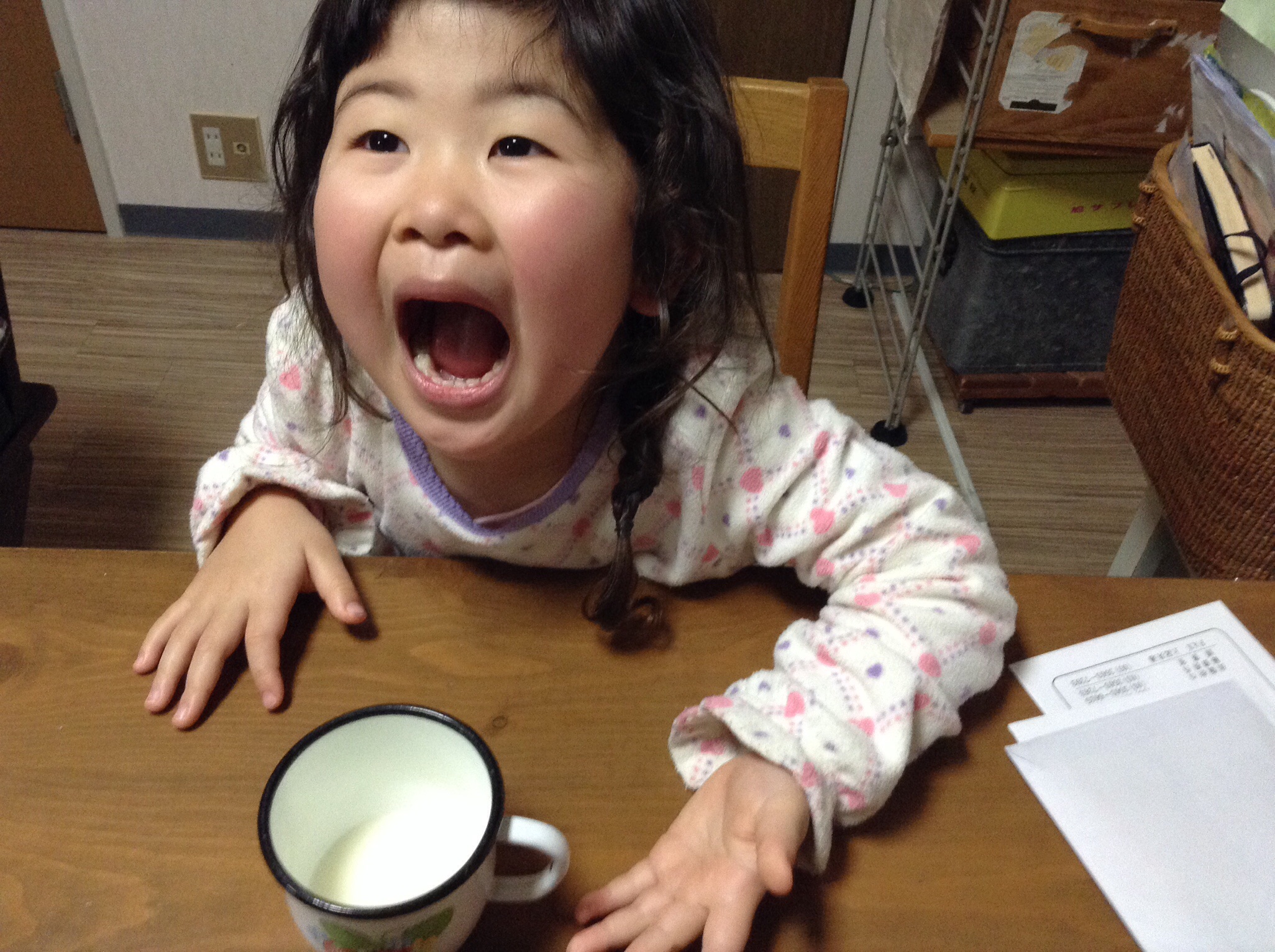 お帰りなさい、で平熱に持ってくる3歳女児の恒例過ぎる悪乗り加減に、もうついていけない……燃え上がれ……愛のレジスタンス……(@The ALFFEE)