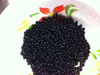 見てみて、畑のキャビアだね。キレイ〜。