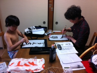 「孫とこうして差しで筆を進める日がくるとは…☆」と萌える齢七十と、ナカナカの達筆振りで阿呆なこと書く萌え漢。何故全裸?