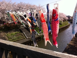 今年は桜の開花が遅かった為、ほんの数日前までは満開の桜と鯉のぼり(流し)の奇跡のコラボが眺められた。鯉も嬉しそう。