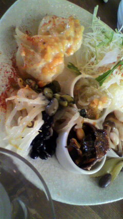 ランチはホントに色んな種類の豆を使ったお惣菜に、自分で雑穀米・豆をつかったスープをよそうハーフセルフスタイル。豆ってほんと、何の料理にも合う事がわかるメニュー。