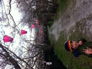 小さいインディアンと花見散歩中の一枚。(実はインディアンじゃなくて、台湾の山岳民族用だという事は、気づかれていない)