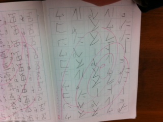 少年の書き取りの宿題。