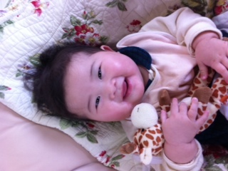 嬉しい、嬉しいリンリン。最近お気に入りのキリンちゃんをギュッと抱いて。