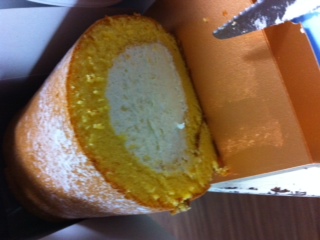 シフォン、ものすっごい旨かったけど、ロールの生地が…うま過ぎ。旦那さん絶叫。この断面っすよ?太ってるぅ~。あー、美味しかった、ごちそうさまでした!(だからダイエットは?)