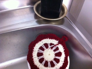 しっかり目のアクリル毛糸製は、やっぱガスガス落ちが良いし、タワシバリの使用感。矢張りアクリルタワシは良い毛糸に限る、と頷く私は他力本願。(snowちゃーん、ありがとーーー!コレいーね!)