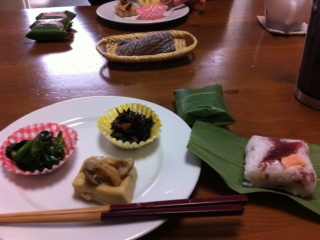 流石ダイエット成功中の友は心得ていて、差し入れはミョウガの笹寿司であった。それに我が家の和の常備菜でダイエットランチにした。なかなかダイエット部っぽくて、いいぞう!(あとは痩せるだけ~)