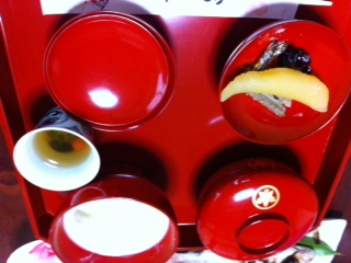 朱塗りの膳が可愛いこと!少年もコレで初正月にお食い初めしたなぁ、懐かしい。
