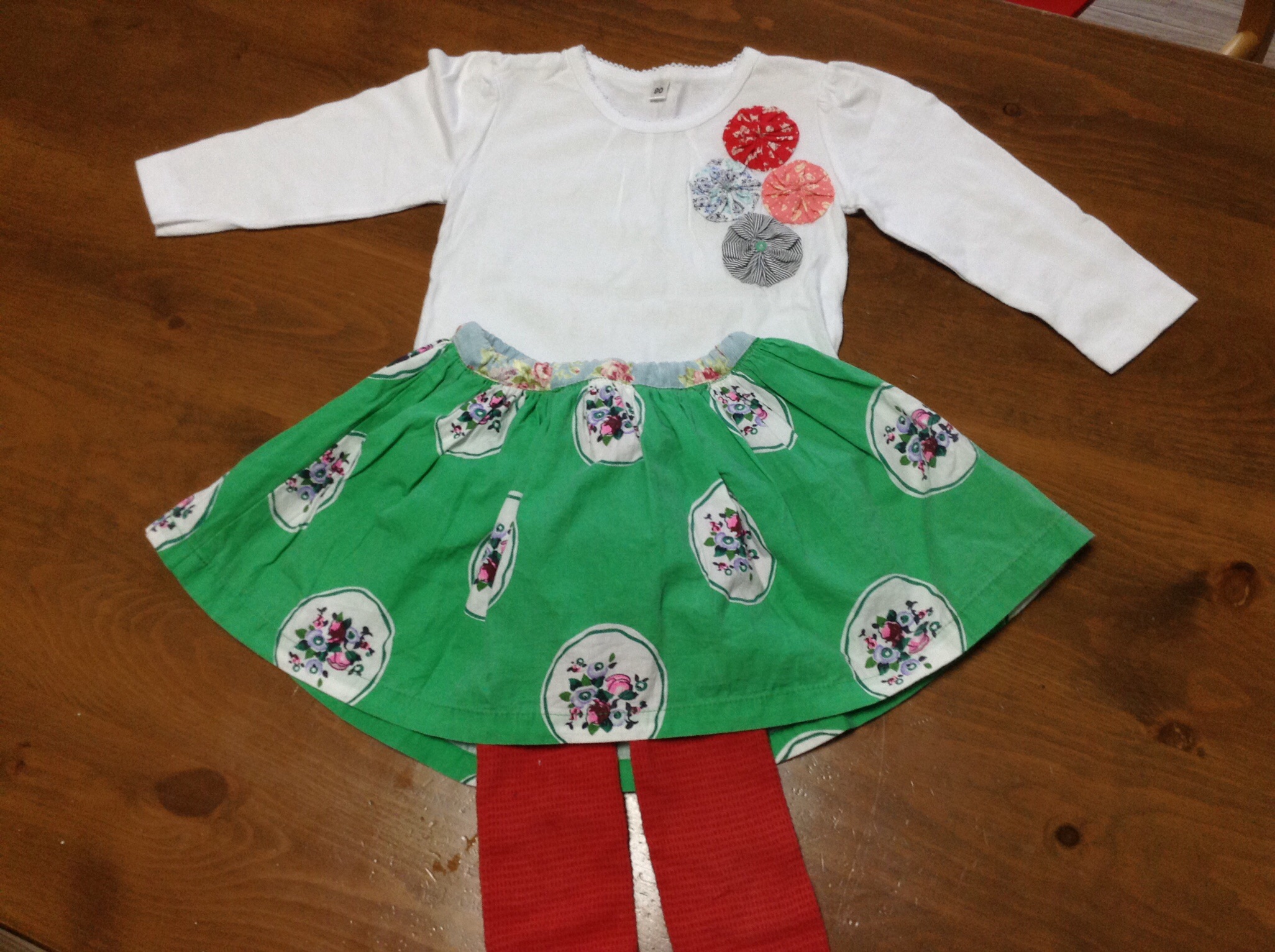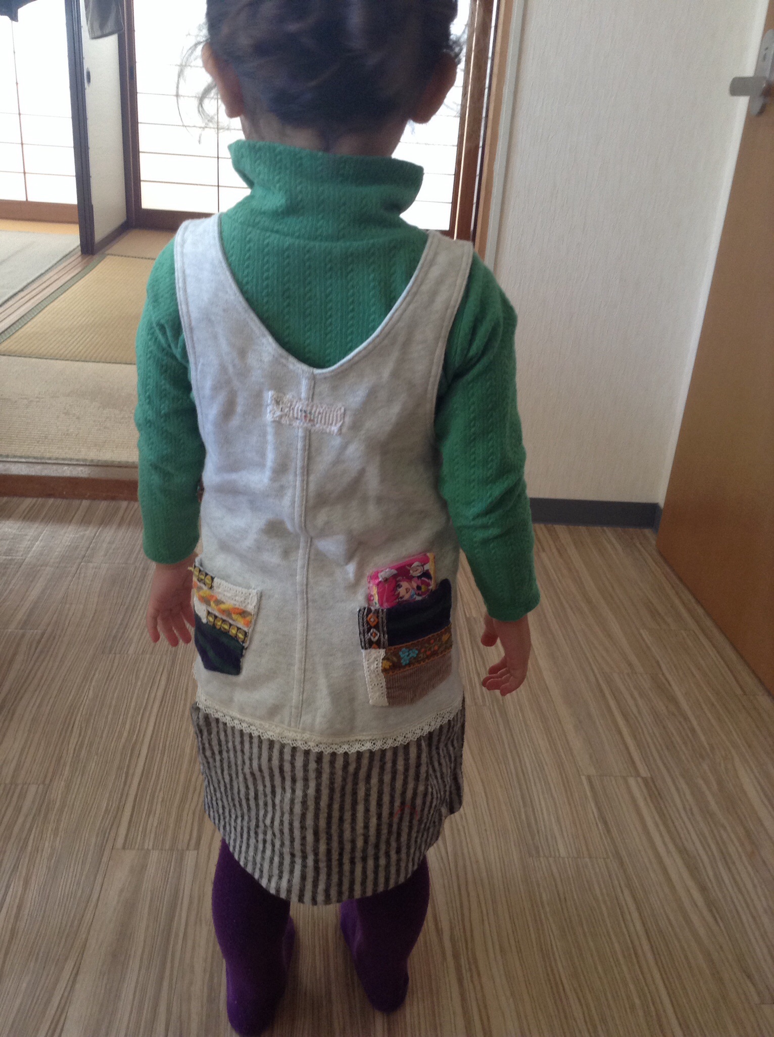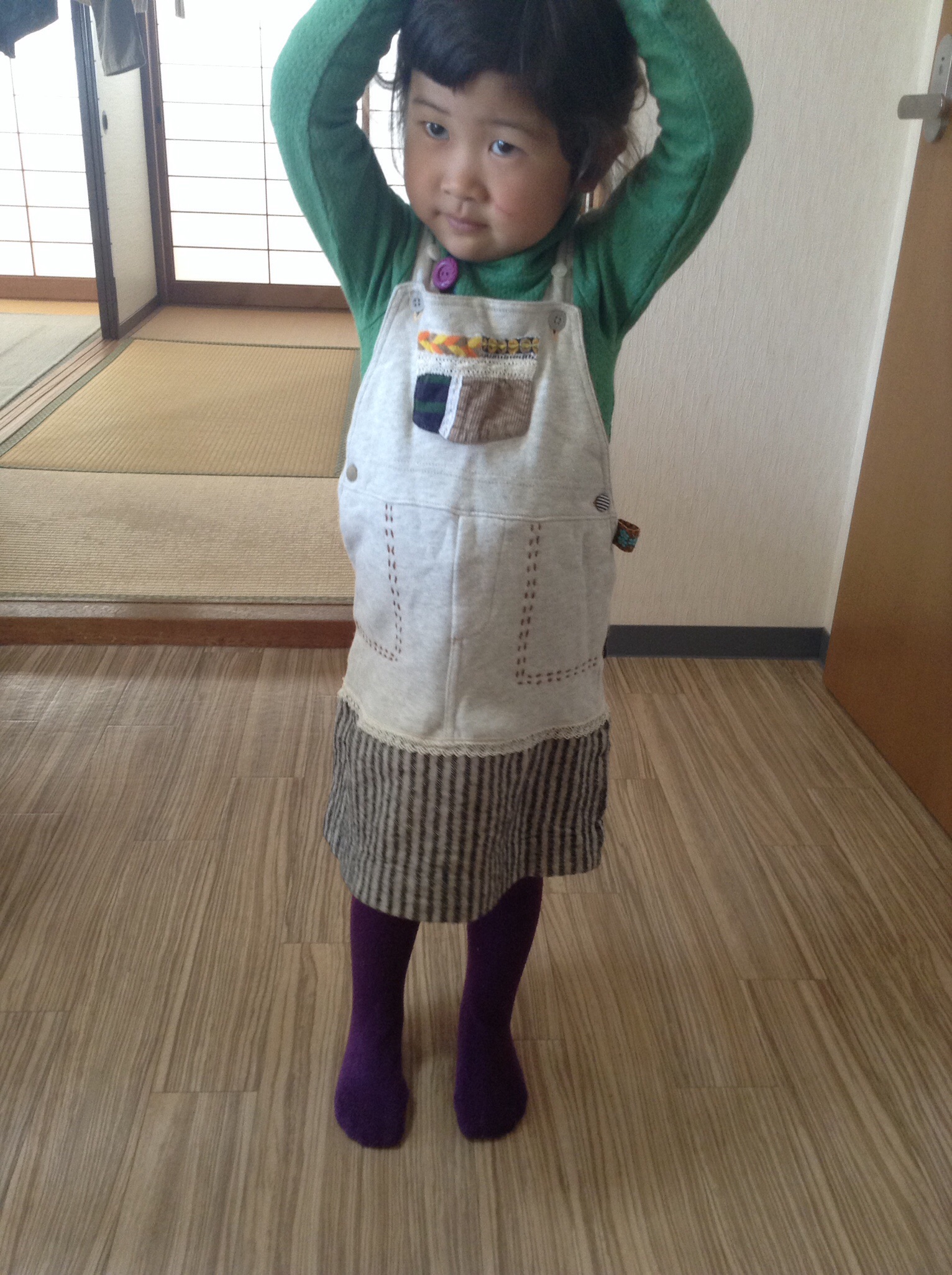某ユニクロで買った無地のオーバーオールをチロリアンテープで飾り付けした兄さんのお下がりを、妹が履いて、でっかくなっちゃって……