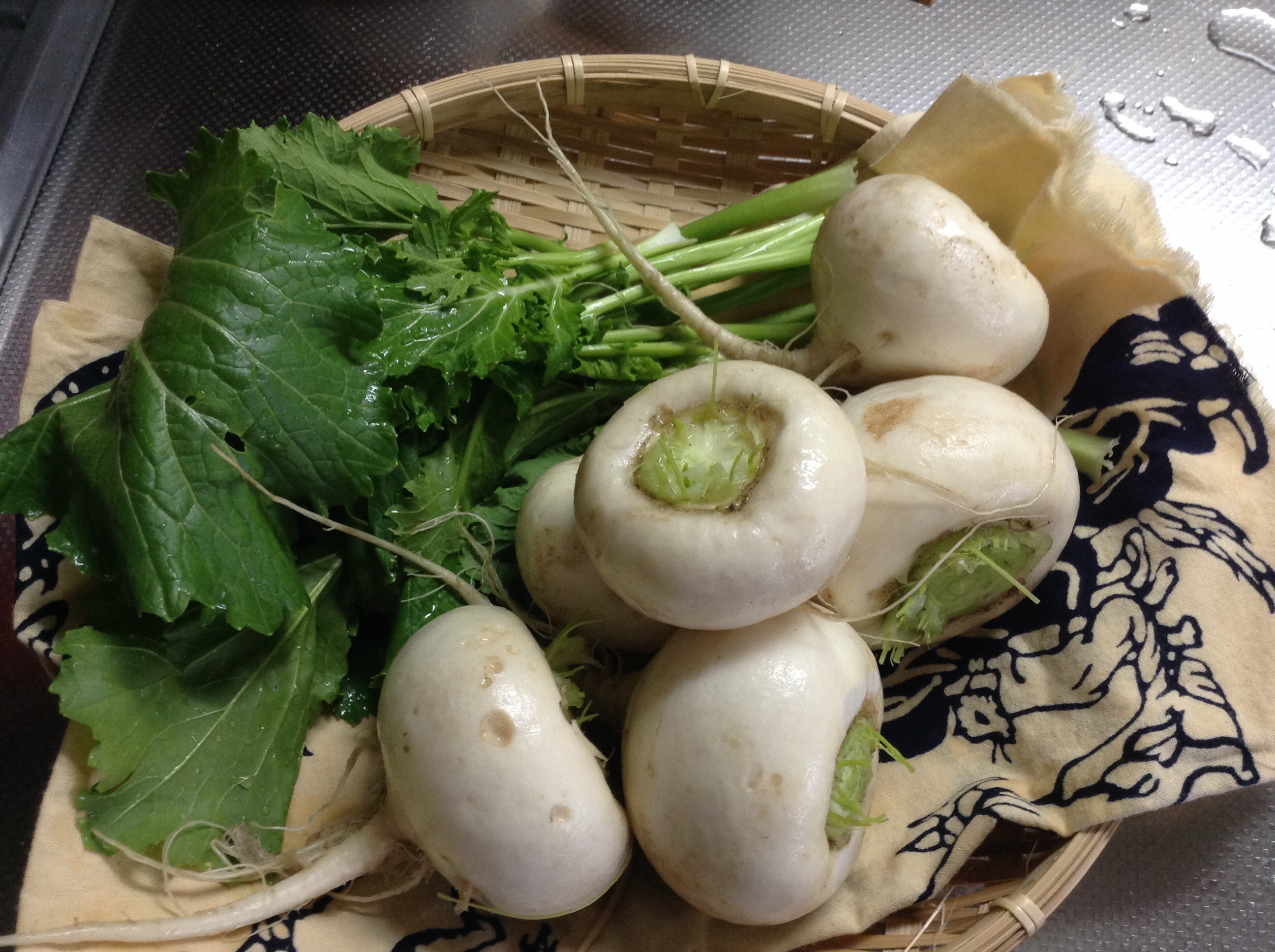 今年お山で採れた上出来の白蕪も、今週続く雪予報を前に全て収穫。