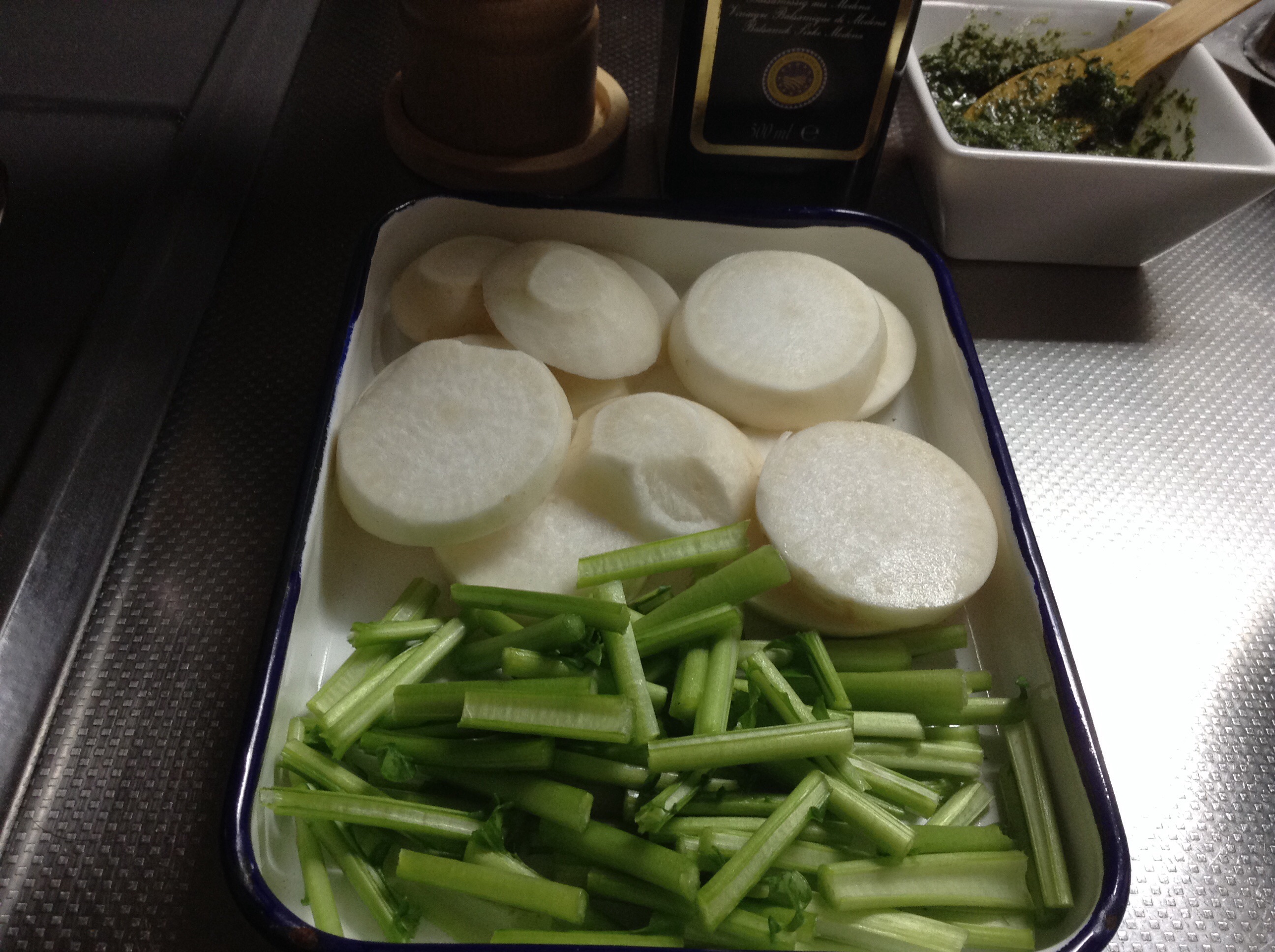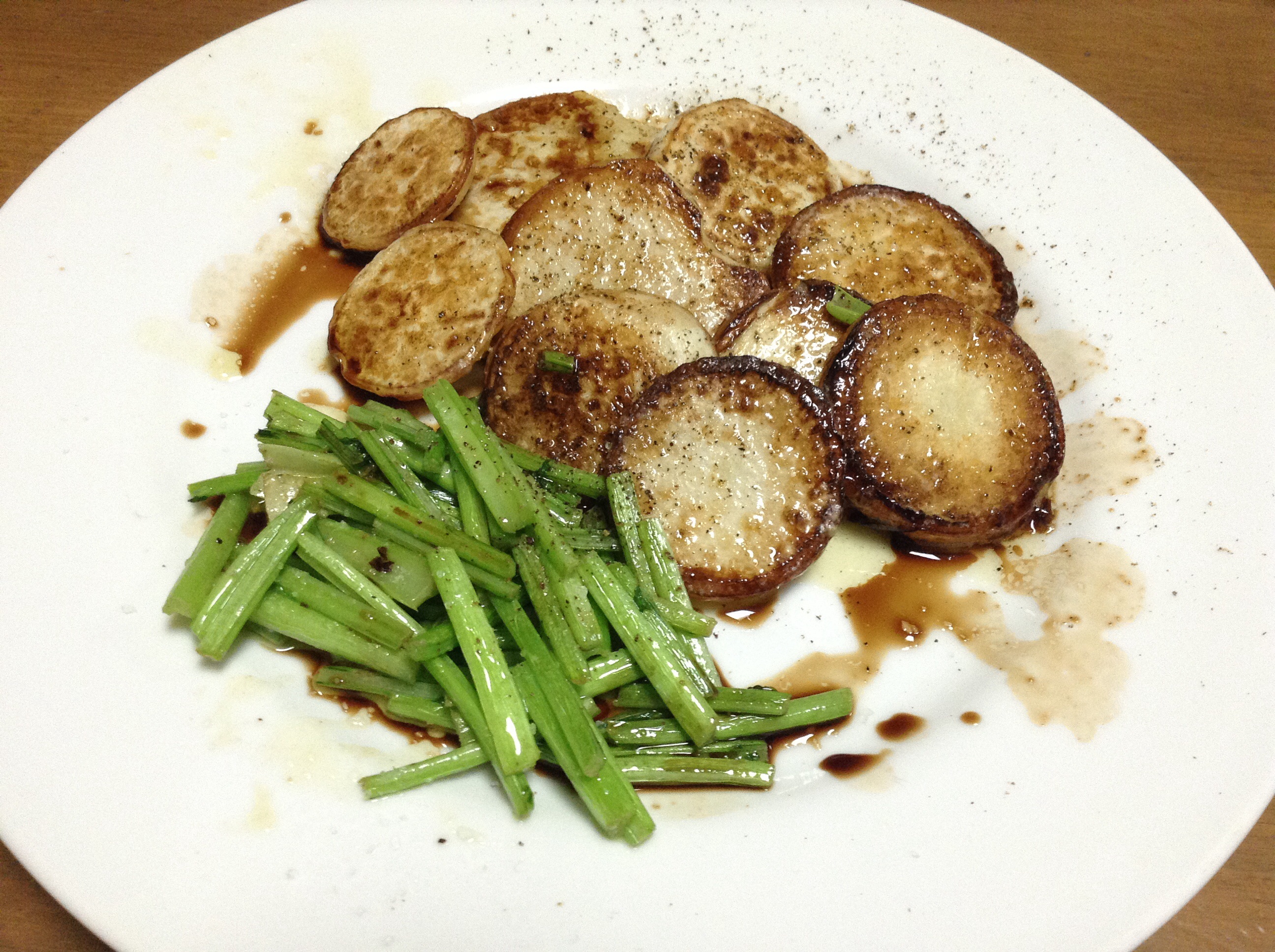 オリーブオイルでこんがり両面を焼いて、岩塩をパラリ。仕上げにソースがわりのバターで絡める。蕪とバターは本当に良く合う。