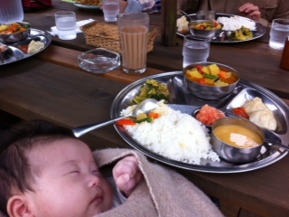 ネパール料理は野菜や豆がふんだんに使われていて、香辛料も独特でサラリ身体の中からキレイに浄化されるような気がします。皆で囲む外ごはんは美味しいものだし、山の空気も美味しいし、お店のおねいさんもキレイし笑顔が素敵だし、スガピーはハムスターみたいにモグモグ食べるし、アウトドアに似合わない我等ではあるが存分に秋の一日を愉しみました。