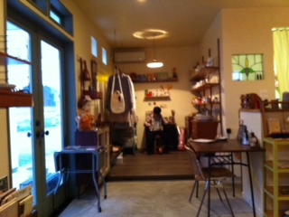 こじんまりして落ち着いた照明の店内では、挽きたての珈琲は勿論、ほっこり味のお食事や作りたての甘いもんもある一方、オーナーご夫妻が直に買い付けに行かれるセンスの良い北欧やフランスの雑貨やデッドストックの食器やらが一角に売られている。