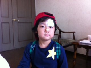 画像は今朝の少年。顔面とびひ中で、満身創痍の一枚。今日で特別夏季プログラムは最終日、本日は朝から植物園に遠足だといふ。帰ってきたら、2人のおネェ様方と同伴で「あらい」の肉だ。なかなか小1の夏は忙しいぜ!とびひ作ってる場合じゃないぜッ(プール入れないし~)!